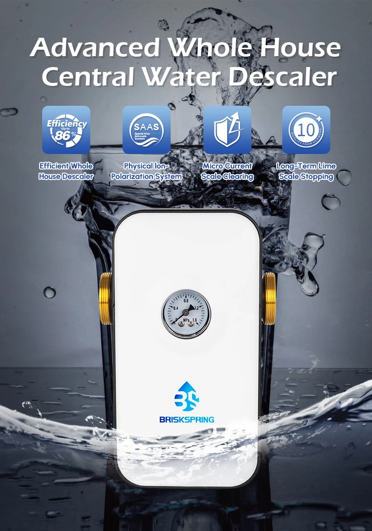BriskSpring No Salt Water Softener System Whole House Water Conditioner & Descaler Anti-Limescale for Hard Water 6T/H Large Flow